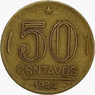Moeda: 50 centavos de cruzeiro - Verso Getulio Vargas