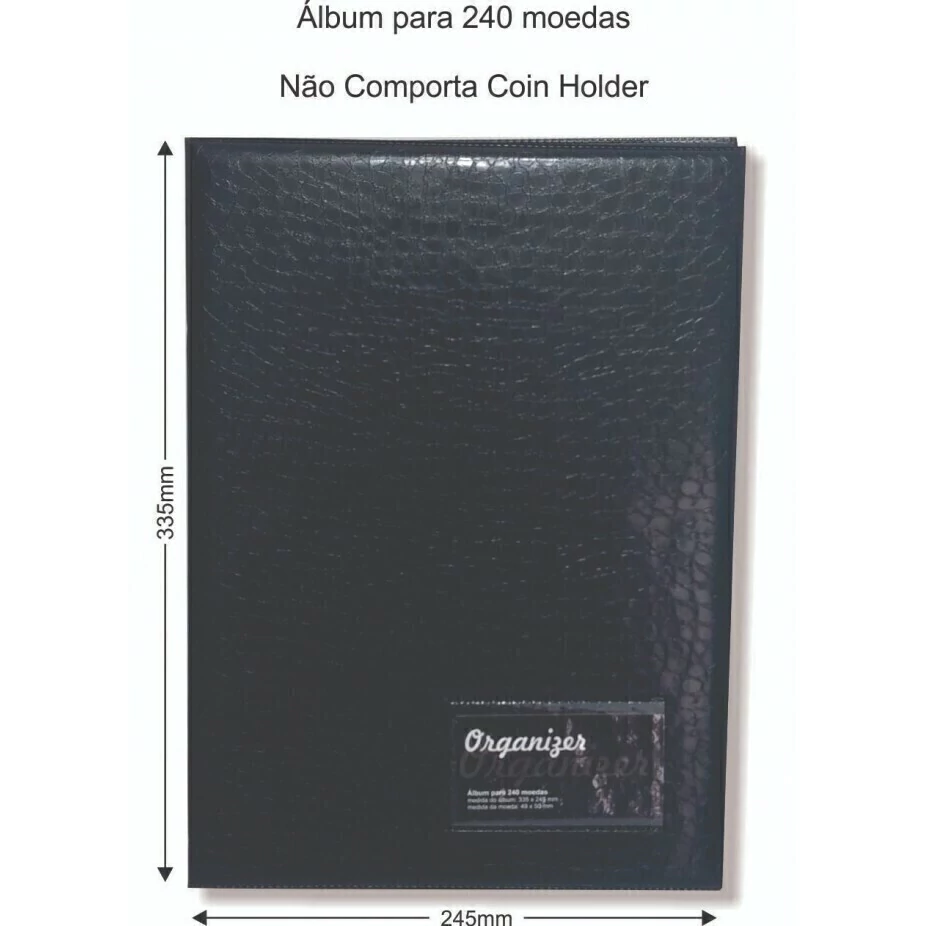 Álbum para moedas com capacidade para 240 moedas, com Abas