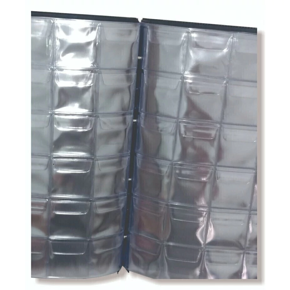 As folhas de plástico protegem a suas moedas contra o desgaste, sendo por manuseio ou ação natural do tempo. Cada página possui 24 divisórias.