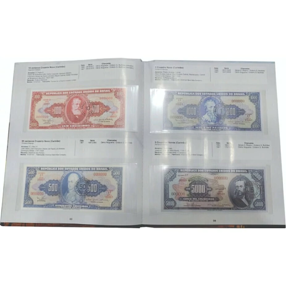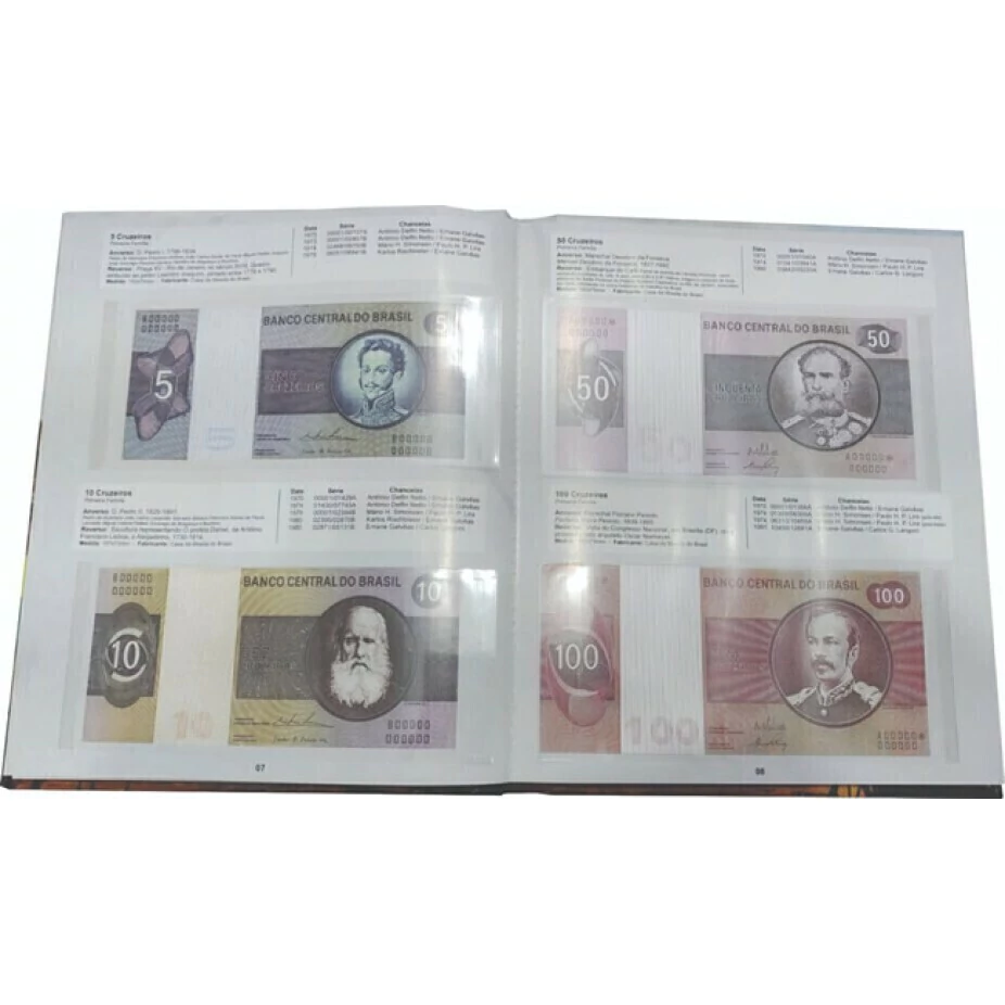 Álbum pratico e explicativo, contendo todas as informações referente aos plano monetários, um breve resumo sobre a vida dos grandes ilustres homenageados em cada cédula e as informações referentes a cada uma, como ministros, chancelas, dimensões, etc...