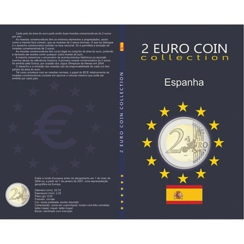 Álbum para moedas comemorativas de 2 Euros da Espanha