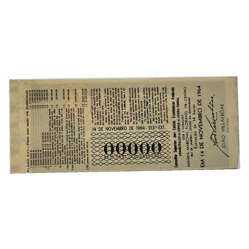 bilhete de loteria antigo - brasil - 1964 - Prova