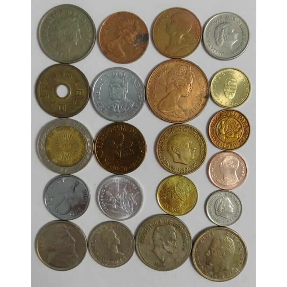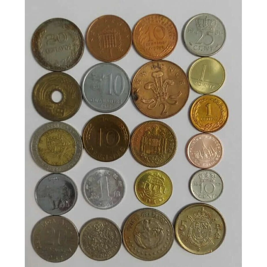Conjunto contendo 21 moedas sortidas de diversos paises.