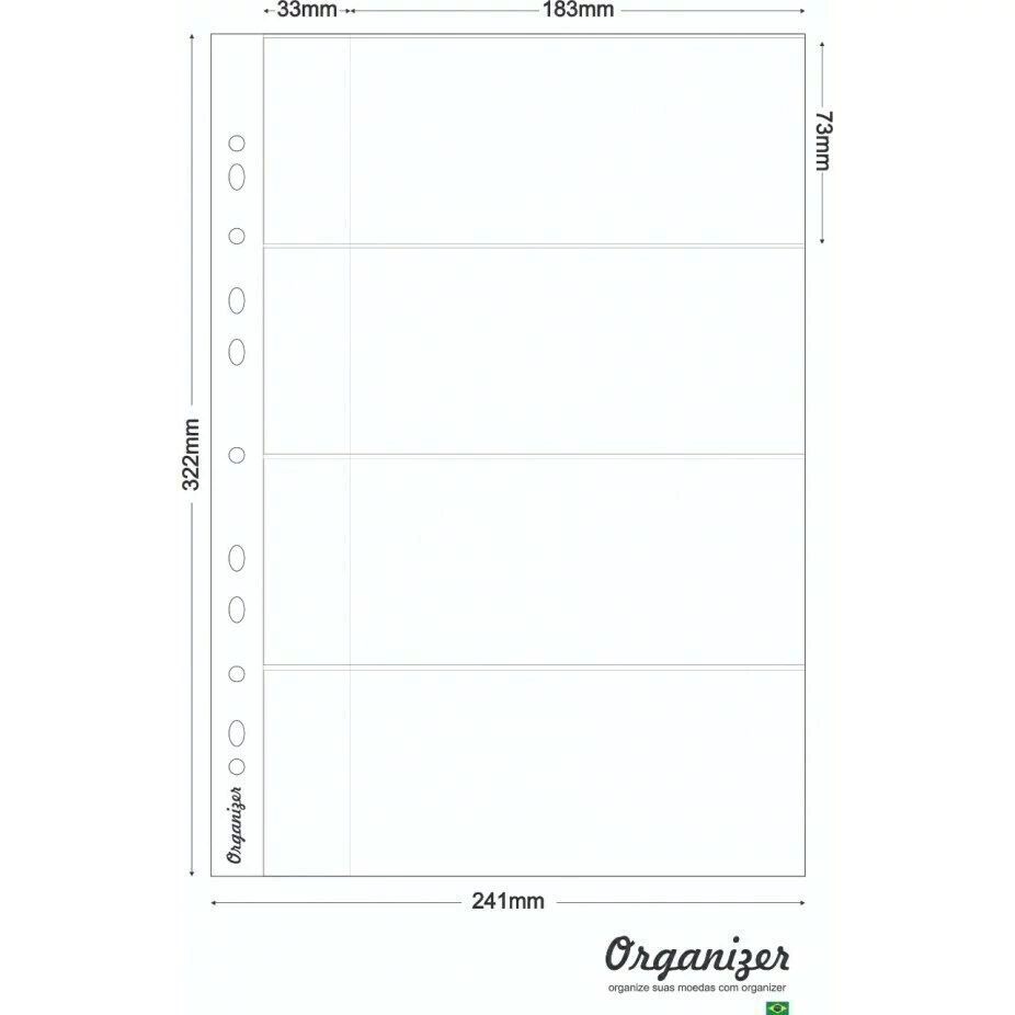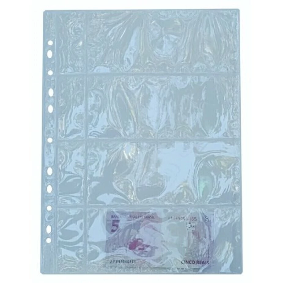 As folhas são perfeitas para organizar sua coleção de cédulas, confeccionadas com material rígido, denominado acetato (livre de PVC) e com excelente transparência.