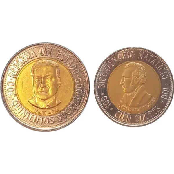 Set com 2 moedas  Comemorativa - 200º Aniversário - Nascimento de Antonio José de Sucre -  Reforma do Estado